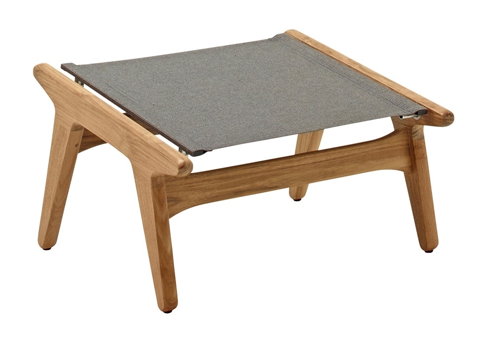 Bay designed by Henrik Pedersen for Gloster is an outdoor footstool with buffed finish teak frame with sling seat.