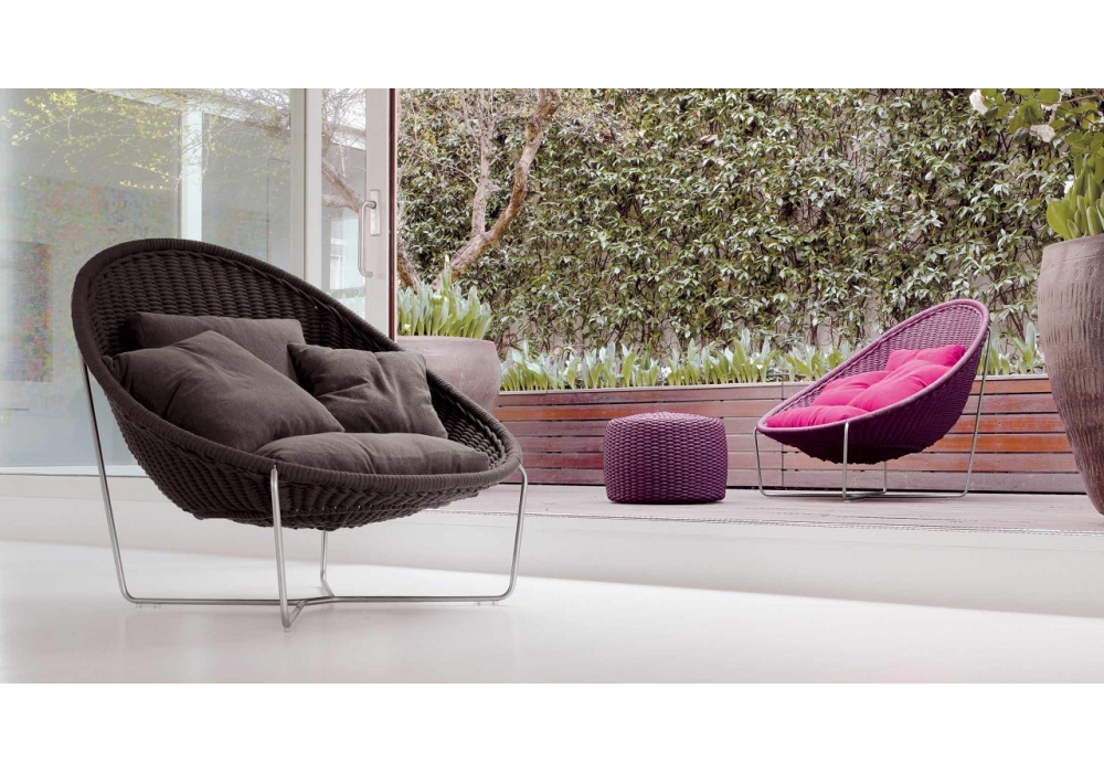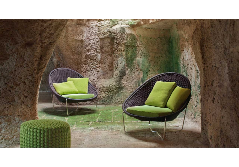 Nido designed by Patricia Urquiola & Eliana Gerotto for Paola Lenti is a outdoor pouf with hand woven Rope Corda 10 upholstery, perfect to combine with the armchair of the same collection. Available in multiple colours.