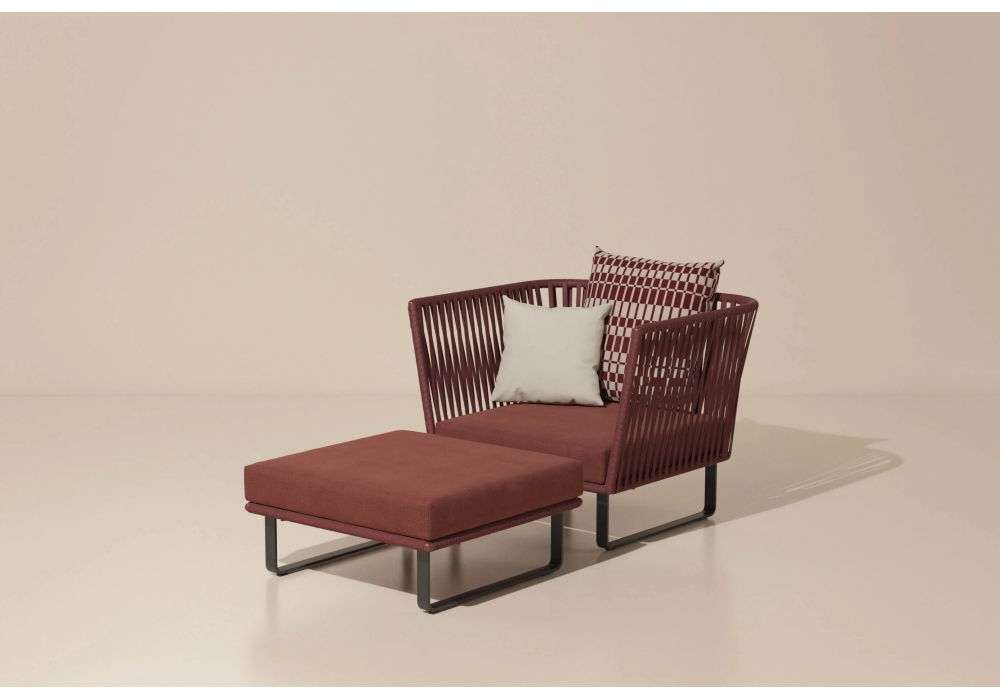 Bitta designed by Rodolfo Dordoni for Kettal is a footrest with a painted aluminum structure and feet always in painted aluminum or in natural teak wood. The body is covered with a synthetic fiber canvas with padded cushions and covered in fabric. Bitta is available in different finishes.