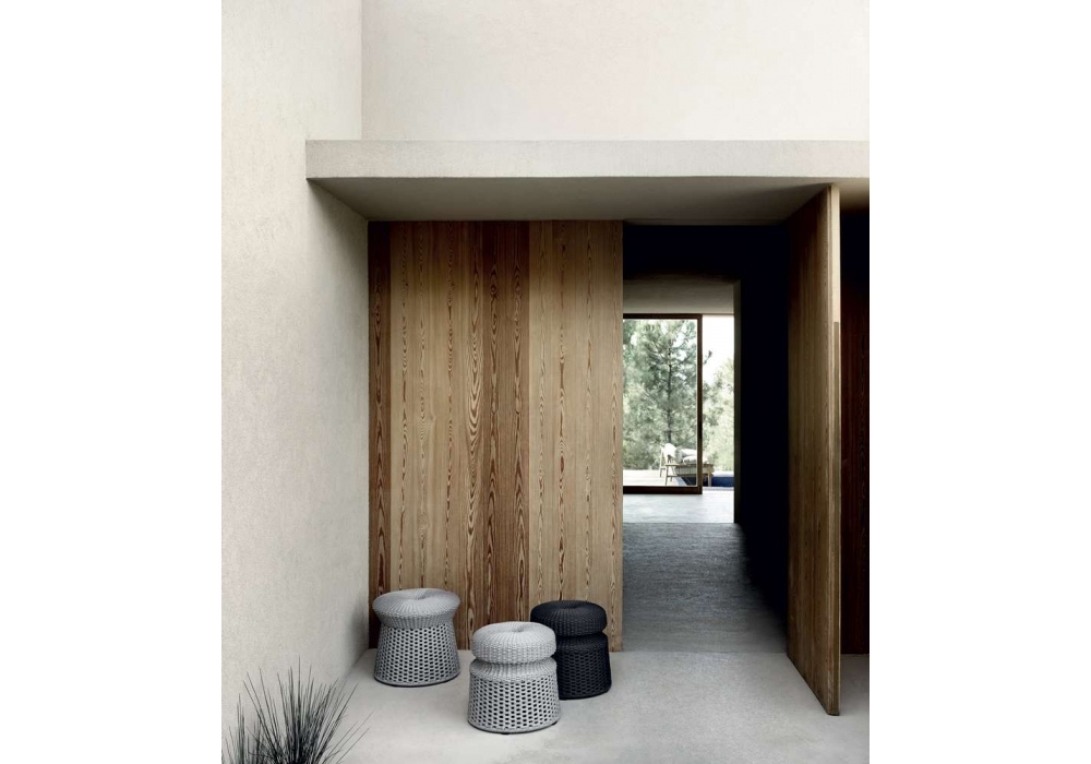 Hospes designed by B&B Italia CR&S, is a pouf in polypropylene fibers braided, available in two sizes and three finishes.