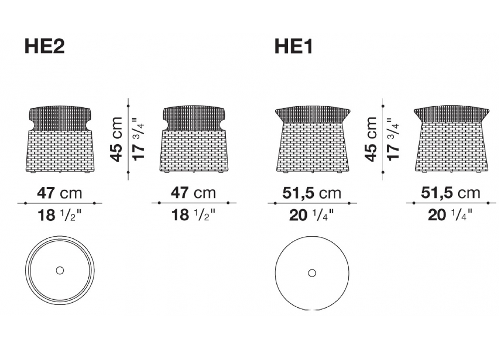 | Dimensions | Ø 47 x H 45 cm; Ø 51.5 x H 45 cm; |