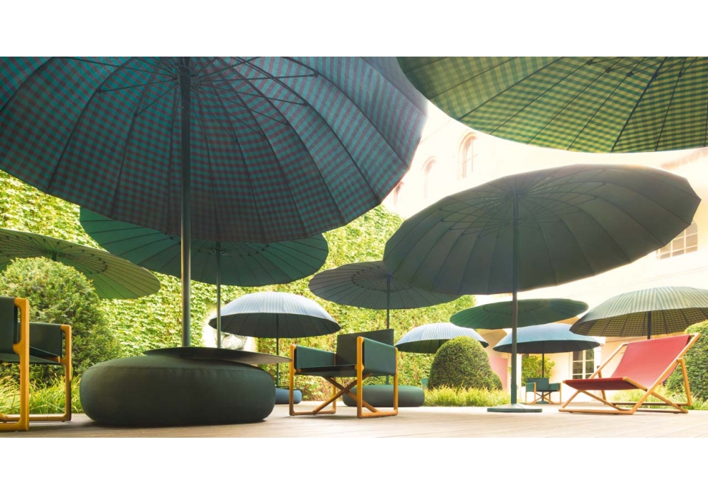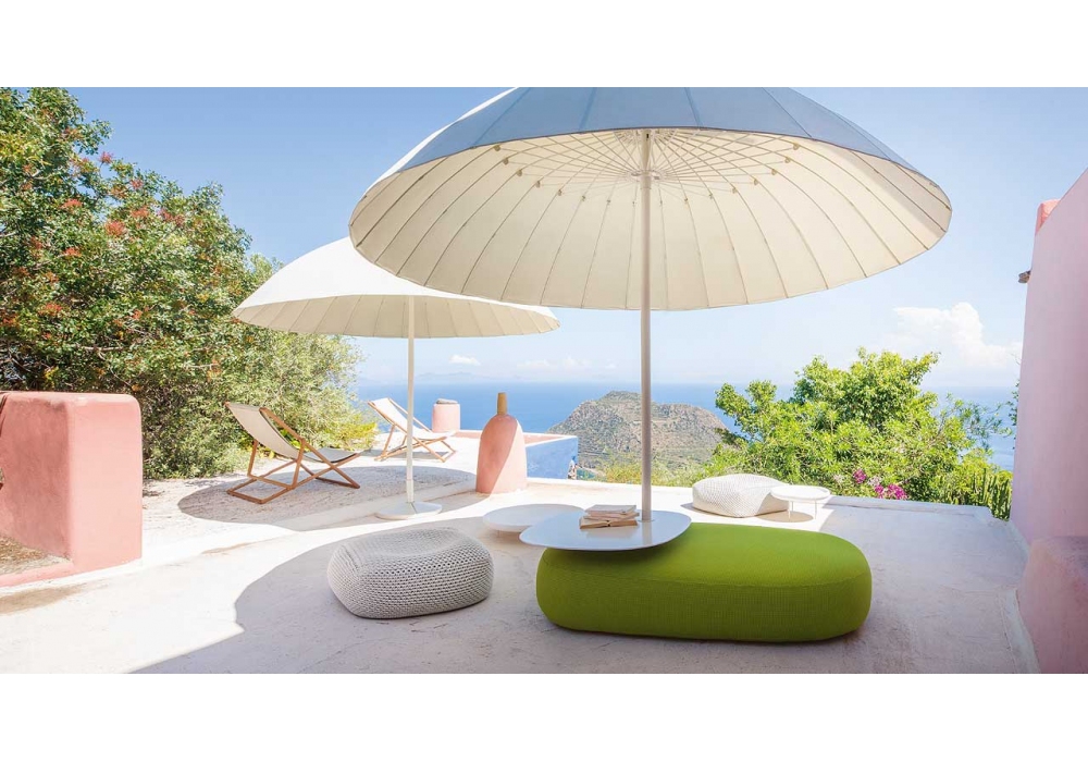 Clique designed by Francesco Rota for Paola Lenti is a pouf that can be positioned around the supporting structure of the parasol thanks to a recess in the padding. Made with non-deformable polyurethane foam padding in different densities and plywood support base.