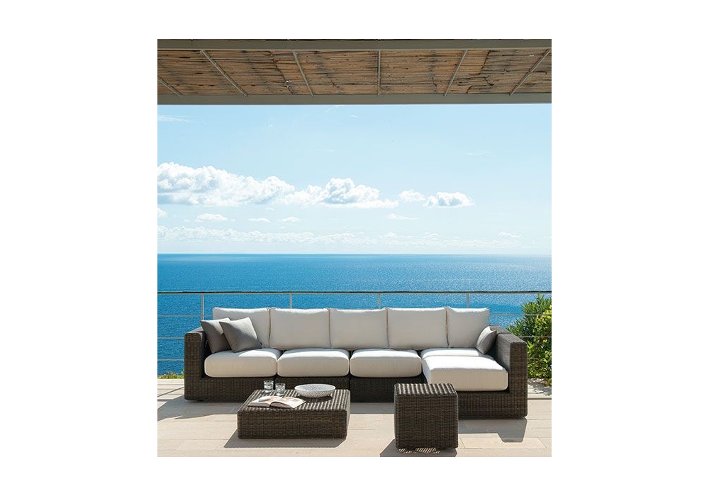 Cube produced and signed by Ethimo is a quadrangular footrest entirely structured with interweaving of etwick in different finishes.