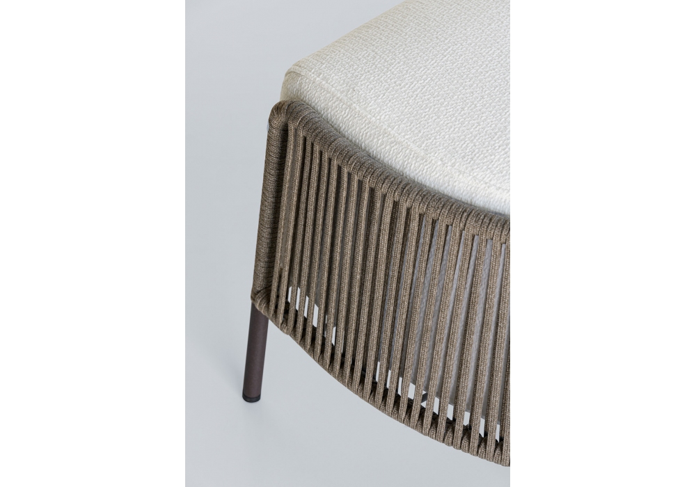 Ola designed by Radice Orlandini for Potocco is an outdoor pouf with structure in powder-coated metal rod hand-woven with “Fly” tape. The seat cushion is padded with fire retardant polyurethane foam and polyester wadding; the fabric underlining is waterproof with sealed seams; final lining in outdoor fabrics.
