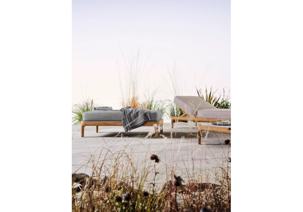 Mediterraneo designed by Francesco Meda for Gervasoni is a pouf made with teak structure and removable fabric upholstery.