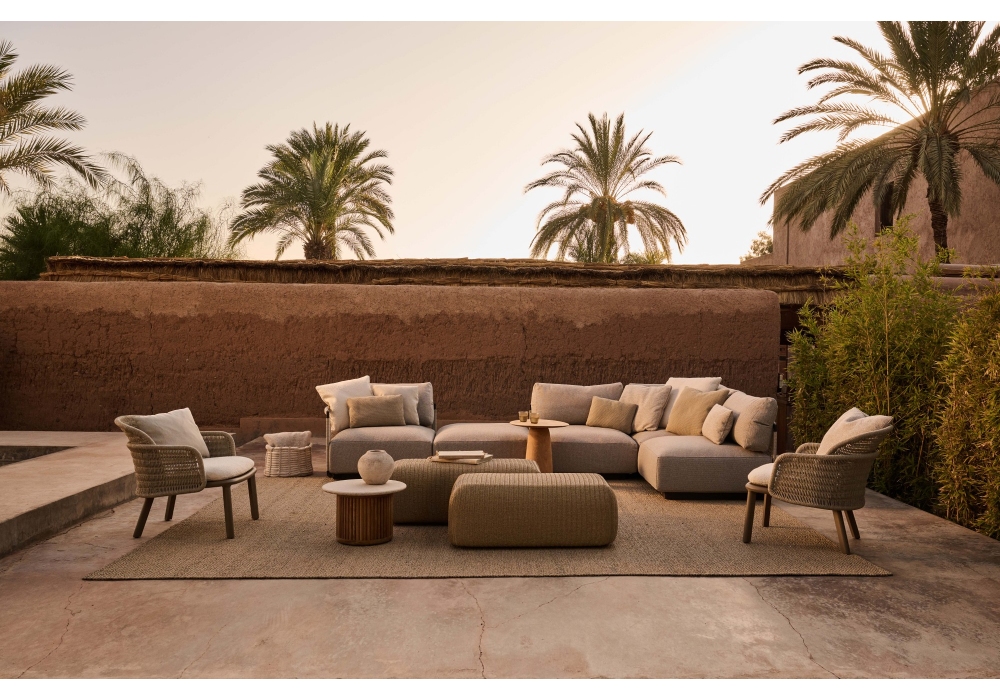 Mai designed by Ilia Eckardt for Tribù is a pouf entirely made of vilex weave hemp knit. Mai is available in different sizes.