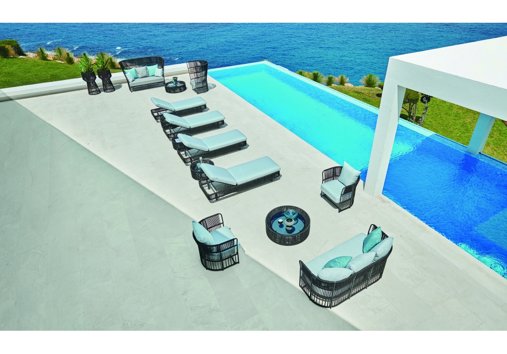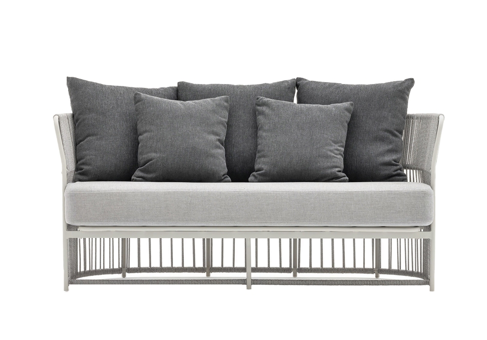 Tibidabo designed by Calvi & Brambilla for Varaschin is a sofa with powder coated aluminum frame with woven synthetic fiber covering. Feet in polypropylene. Removable cushions. Available in different finishes and in two sizes.