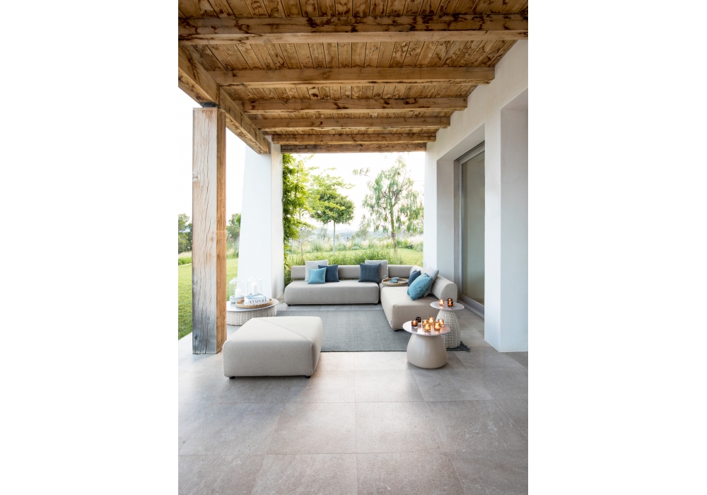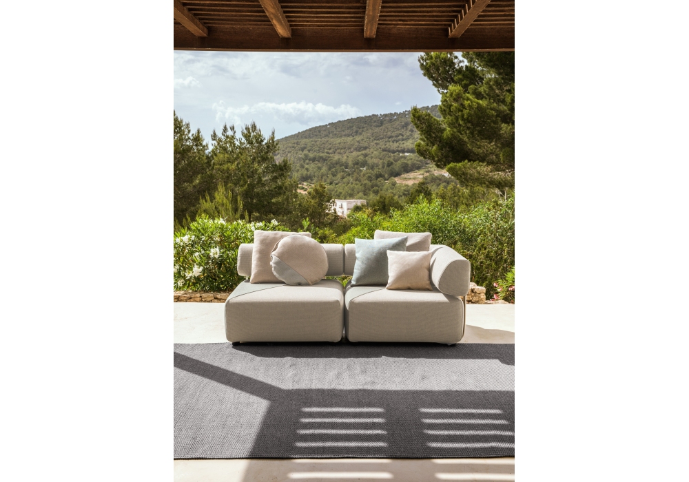 Brixx designed by Lorenza Bozzoli for Dedon is a modular system sofa. The structure is powder-coated steel encased in molded polyurethane foam. The seat and backrest are available in different fabric finishes.