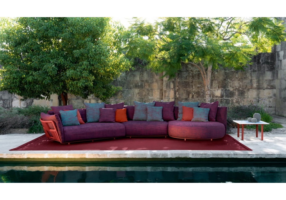 Scacco designed by Ludovica and Roberto Palomba for Talenti is a modular sofa for outdoors, made of aluminum and rope available in different finishes.