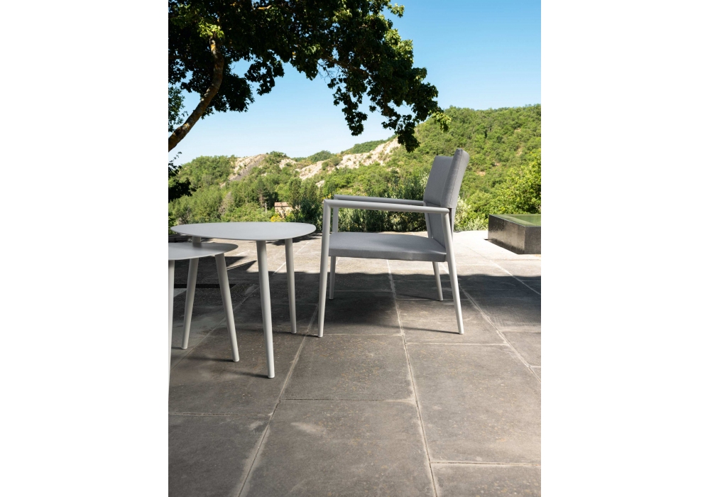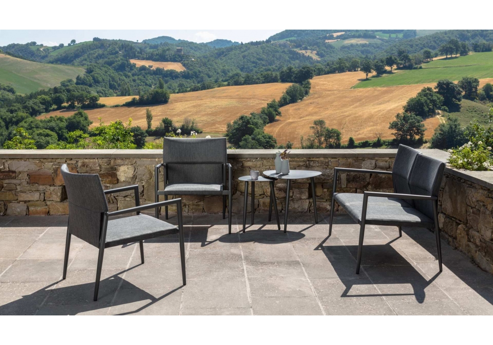 Adam designed for Talenti is a sofa with aluminum structure and cushions in sensitive textilene materials resistant to atmospheric agents.