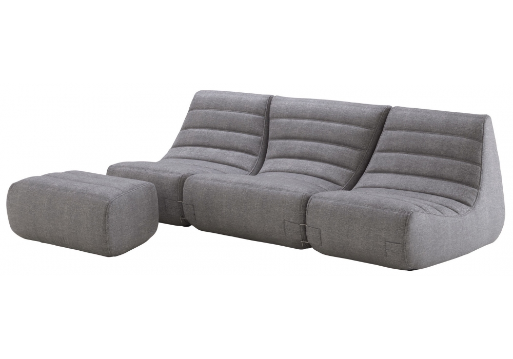 Saparella Outdoor designed by Michel Ducaroy for Ligne Roset is an outdoor sofa with seat and back padded in high resilience polyurethane Bultex foam. 5mm baguette stitch. Upholstery available in fabric. Pouf/footrest as optional.