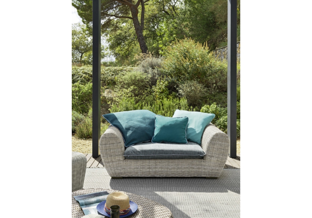 Panda designed by Paola Navone for Gervasoni is a sofa made with a hand-woven aluminum structure in white / melange gray Panda Resin and aluminum feet. Cushions with removable cover. Available in different dimensions.
