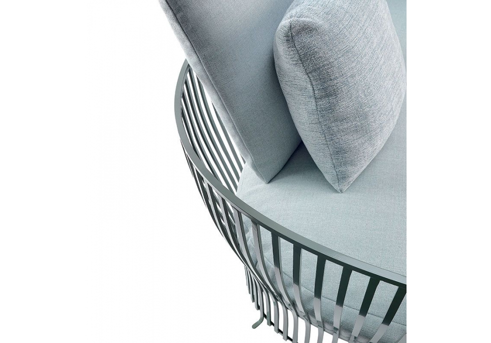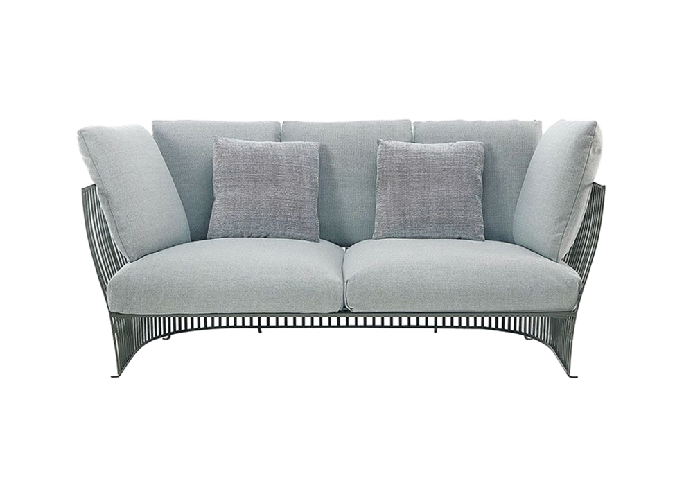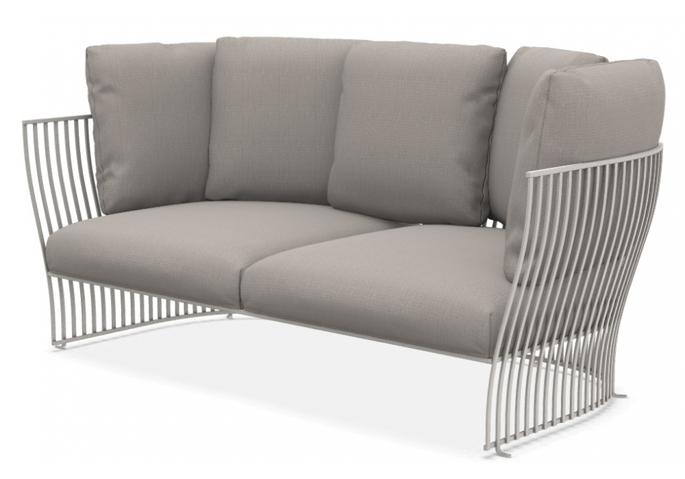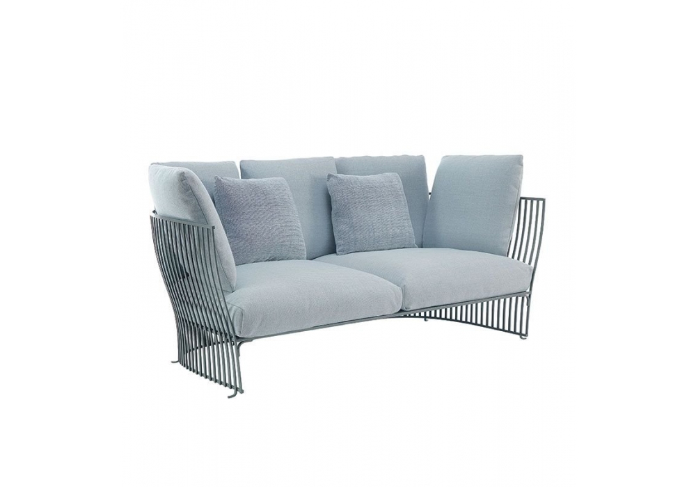 Venexia designed by Luca Nichetto for Ethimo is a 2 seater sofa with painted aluminum structure and fabric upholstery, available in different finishes.