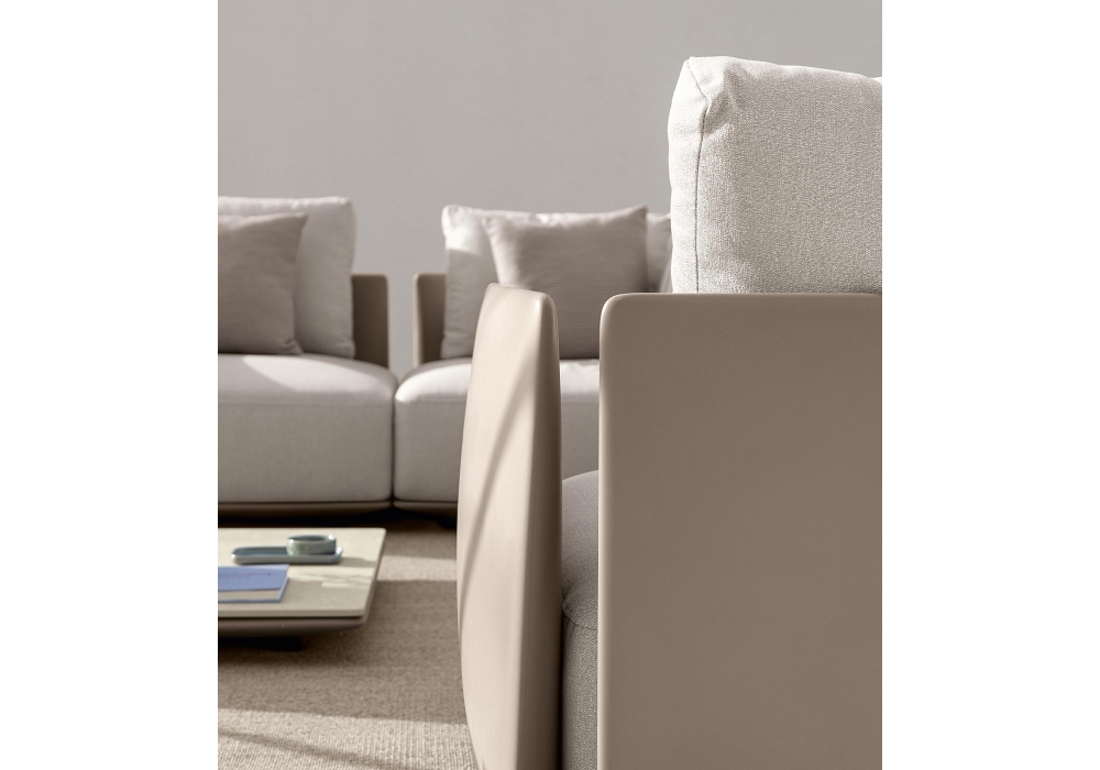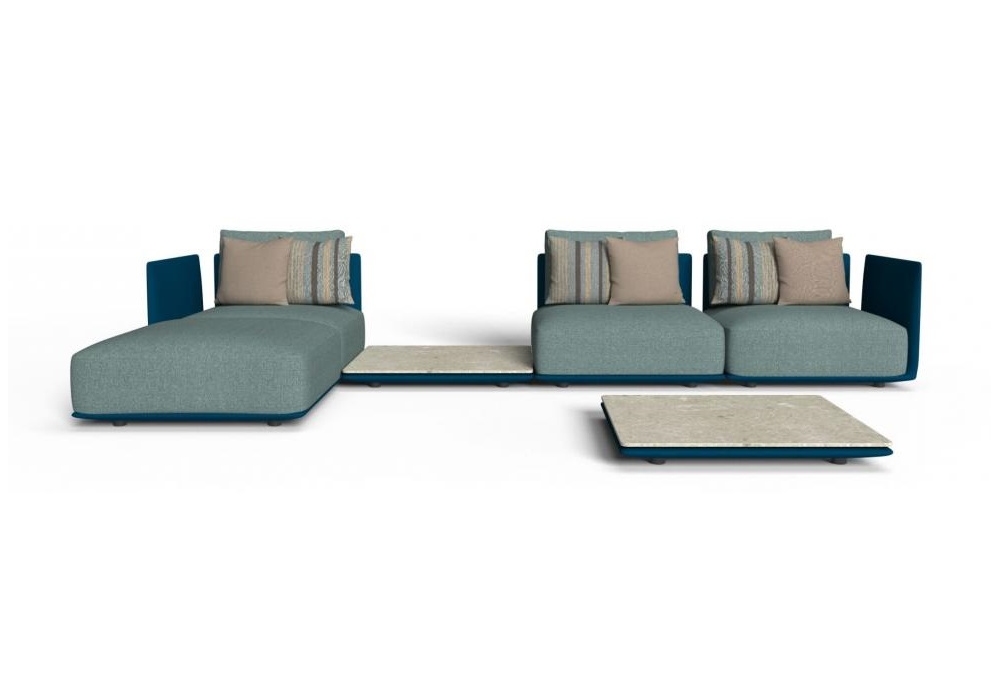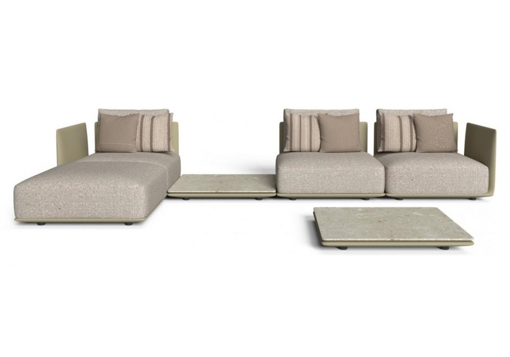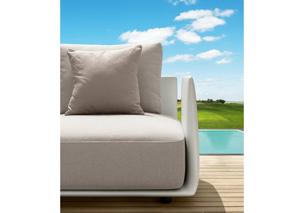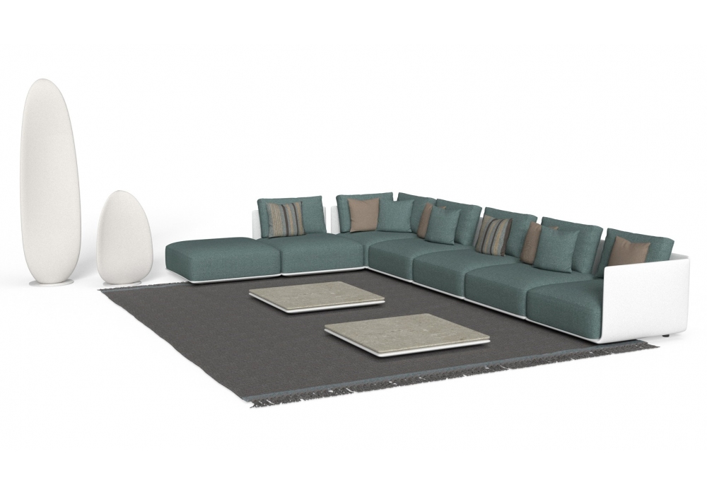 Malè designed by Ludovica + Roberto Palomba for Talenti is an outdoor modular sofa with structure in polyethylene available in several colours. Cushions have removable covers and are upholstered in weather resistant outdoor fabrics.