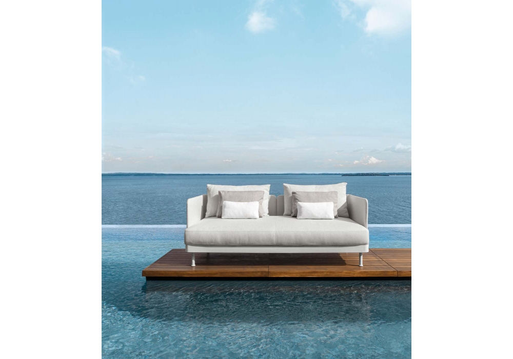 Slam designed by Ludovica + Roberto Palomba for Talenti is an outdoor sofa with structure in powder-coated aluminum. Backrest and cushions have removable covers and are upholstered in weather resistant outdoor fabrics.
