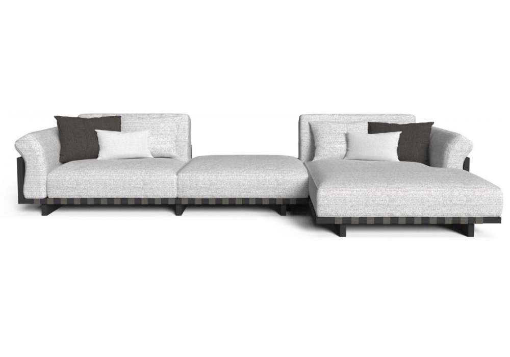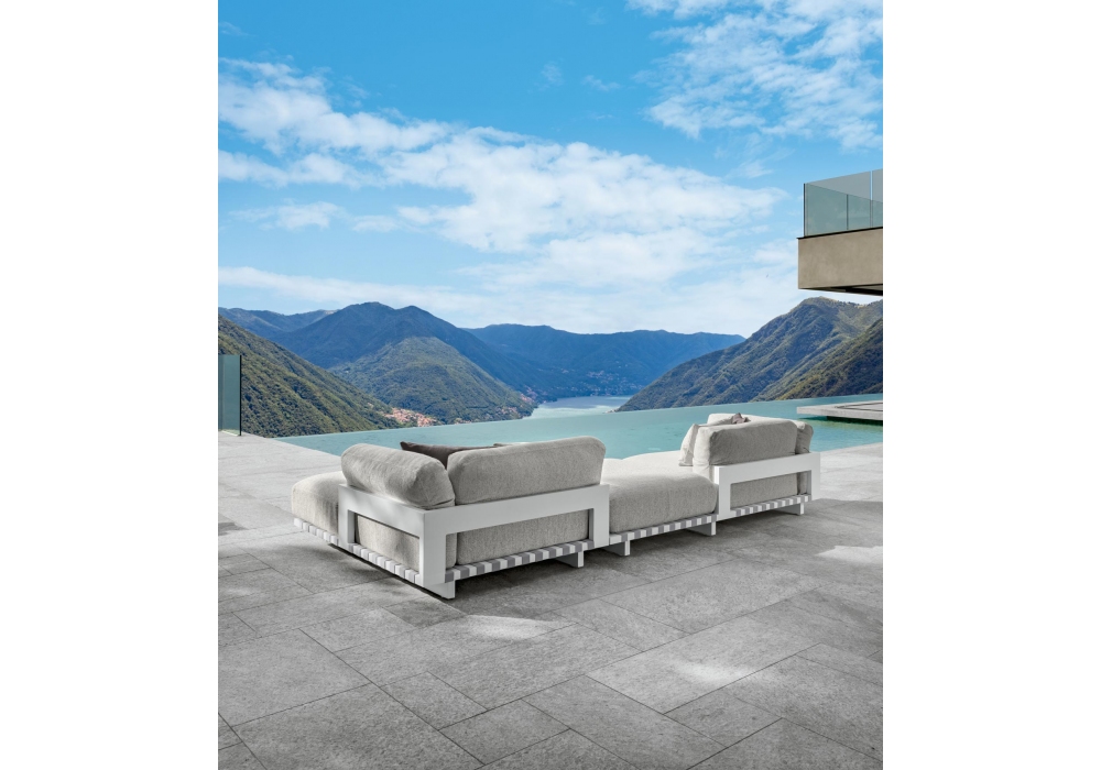 Argo Alu designed by Ludovica + Roberto Palomba for Talenti is an outdoor modular sofa available in several configuration. Structure in powder-coated aluminum and perimeter synthetic elastic straps matching the color of the structure. Cushions have removable covers and are upholstered in weather resistant outdoor fabrics.