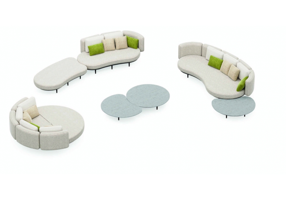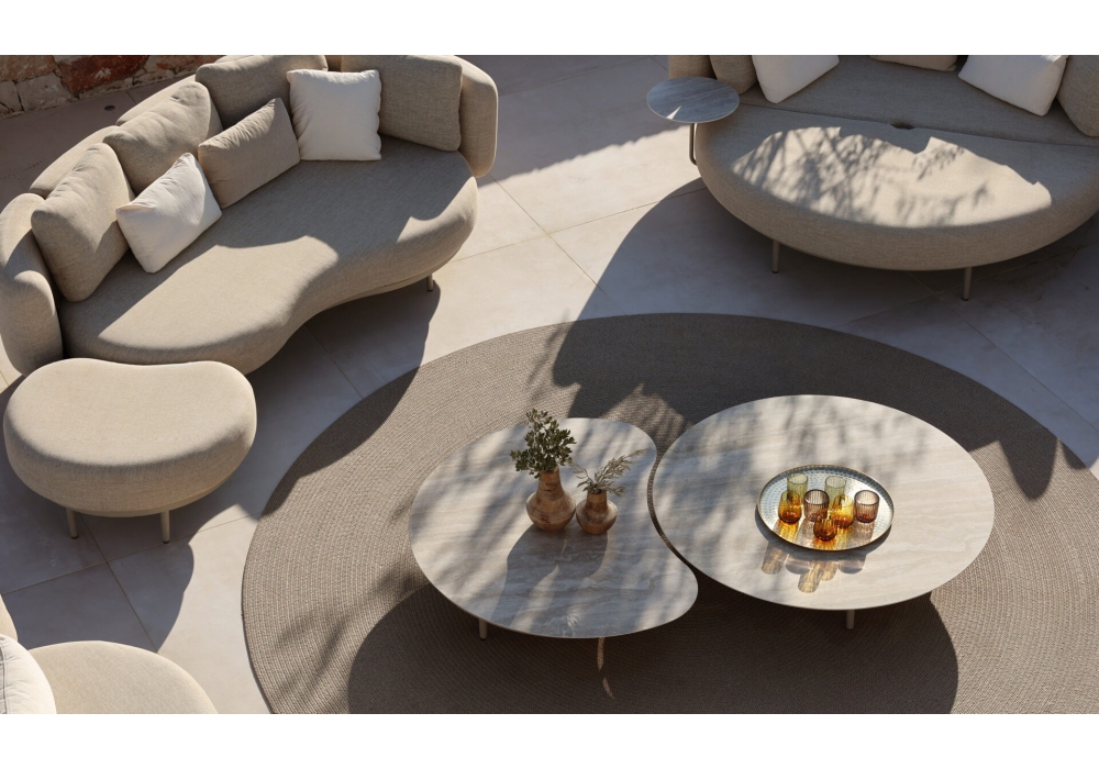 Organix Lounge designed by Kris Van Puyvelde for Royal Botania is an outdoor sofa with aluminum. The back cushions are available in three different curves to match the bean-shaped elements and can be easily attached to the aluminum bases as desired.