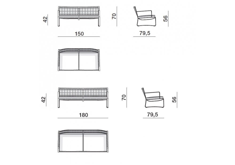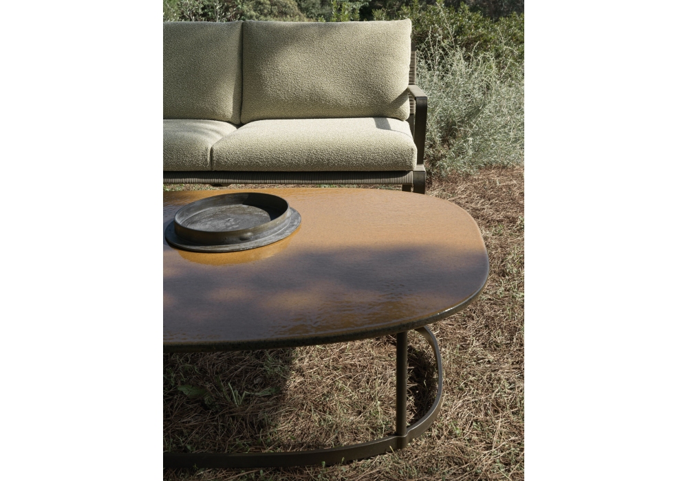 Phoenix designed by Vincent Van Duysen for Molteni&C is a sofa made with burnished metal structure, seat and backrest with braided rope. Padded cushions with fabric upholstery. Available in different finishes and dimensions.