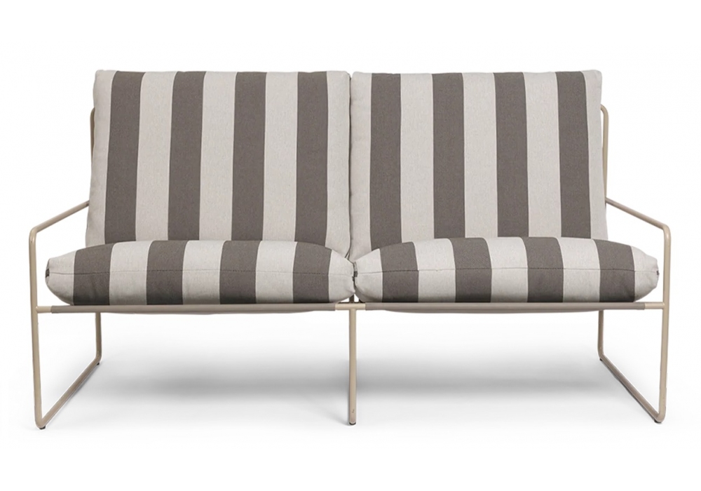 Desert 2 - Seater designed by Ferm Living is a 2-seater outdoor sofa with electro-plated steel frame with powder coating. Seat made of 70% vinyl and 30% polyester mesh fabric. Inner cushion in polyester padding and PU foam. Available in 2 finishes.