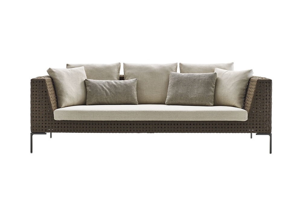 Charles Outdoor designed by Antonio Citterio for B&B Italia Outdoor is a sofa with a tubular structure and aluminum profiles with polypropylene fiber weave. Upholstery in different fabrics.