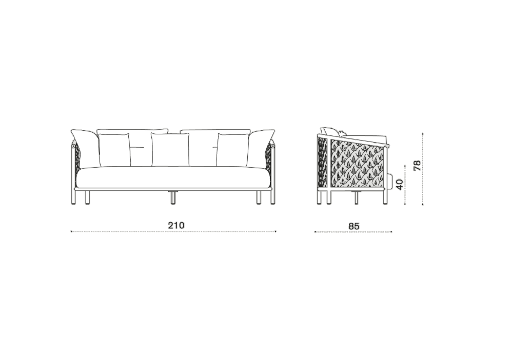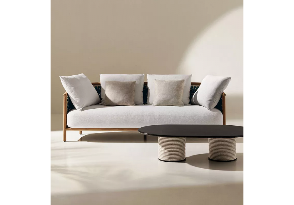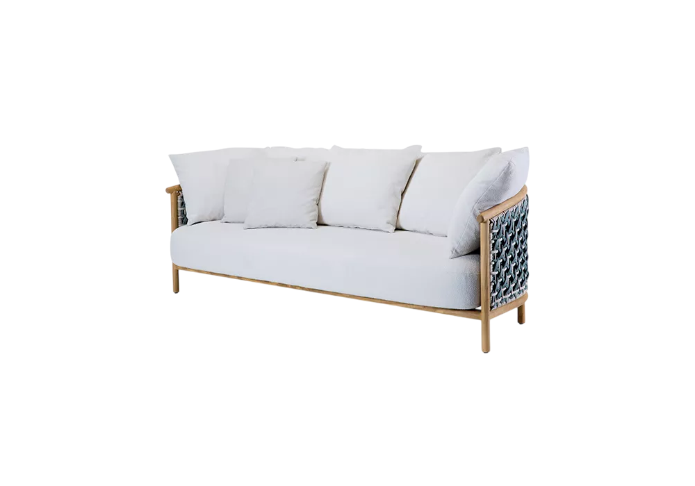 Patio designed by Zanellato / Bortotto for Ethimo is a three-seater sofa with a natural teak structure and a backrest with woven fabric. Seat and backrest cushions in polypropylene.