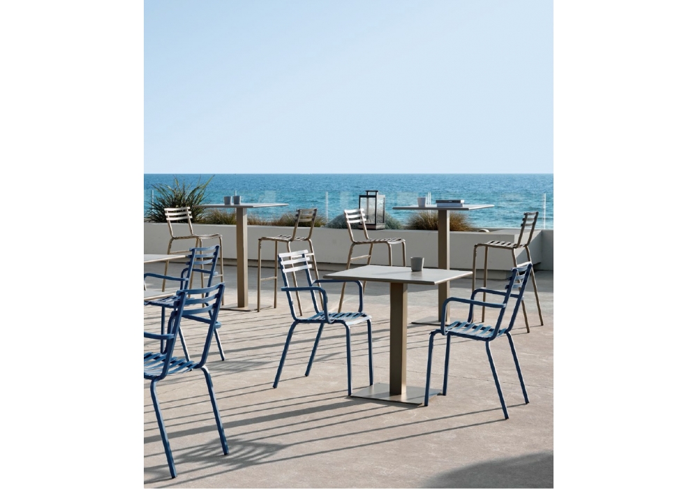 Flower produced and designed by Ethimo is a high stool for outdoors with metal structure available in different finishes.