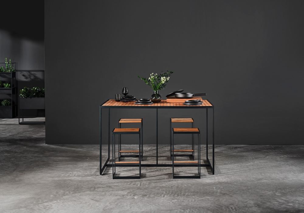 Garden Bar Stool designed by Broberg & Ridderstråle for Röshults is a barstool with structure in stainless steel and teak.