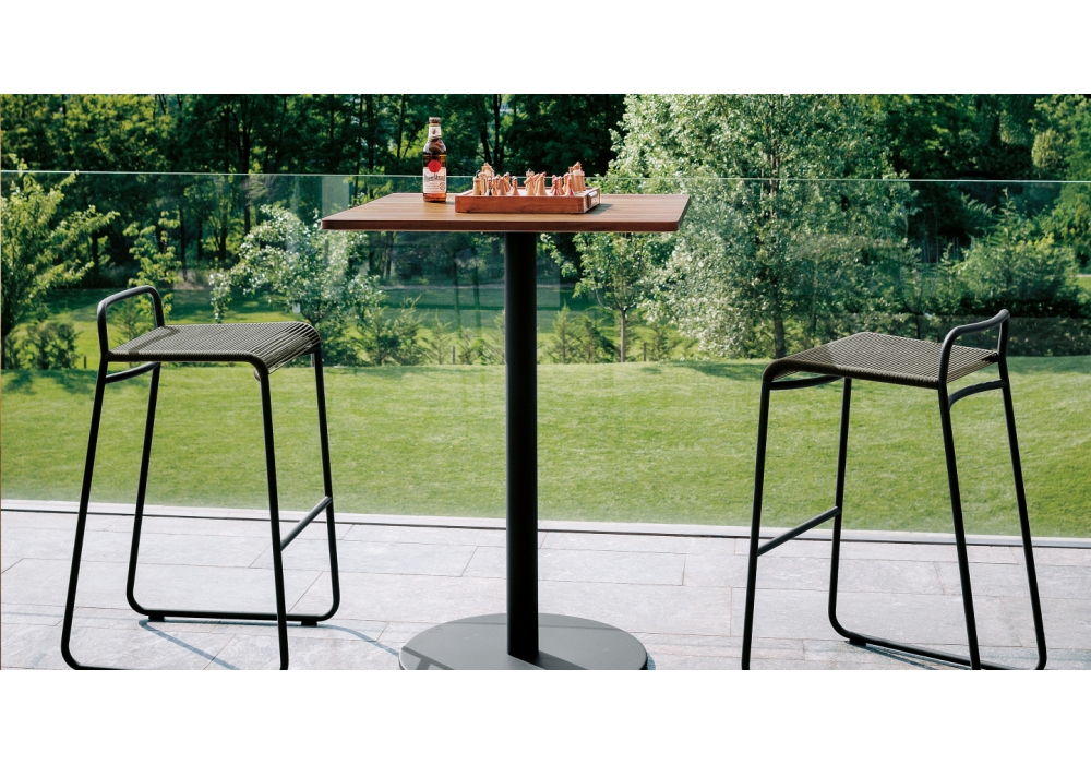 Harp 350 designed by Rodolfo Dordoni for Roda is a barstool for outdoor with powder coated stainless steel structure and polyester cord. The classic string seat finds a new outdoor dimension in this version where polyester trails its infinite filaments around a tubular metal structure in one continuous outline. Available in different finishes.