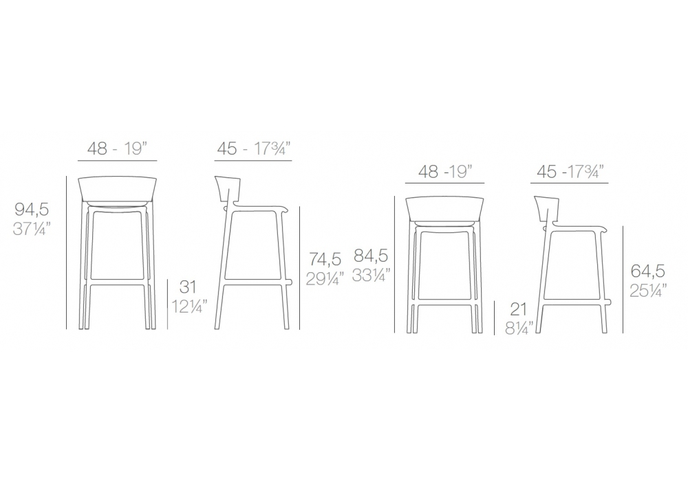 | Dimensions | 48 x 45 x H 94.5 cm; 48 x 45 x H 84.5 cm |