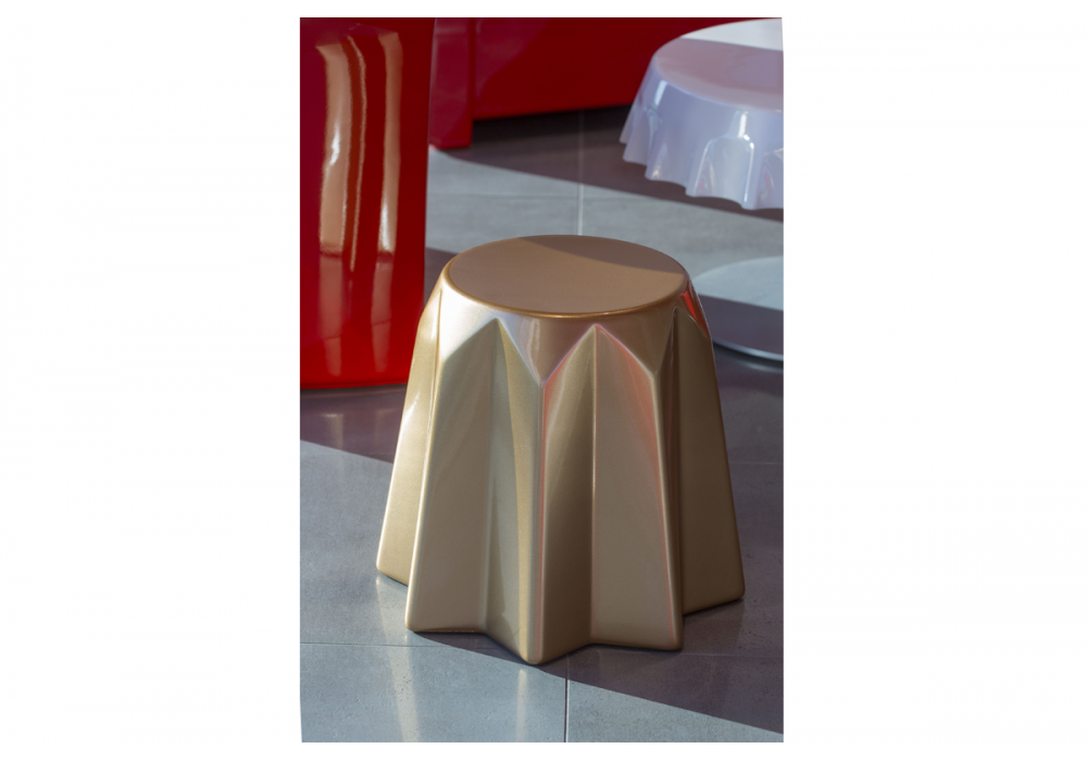 Pandoro designed by Gianni Arnaudo for Slide is an original and fun stool inspired by the shape of the famous Veronese dessert with a base in the shape of an eight-pointed star. Available in different finishes