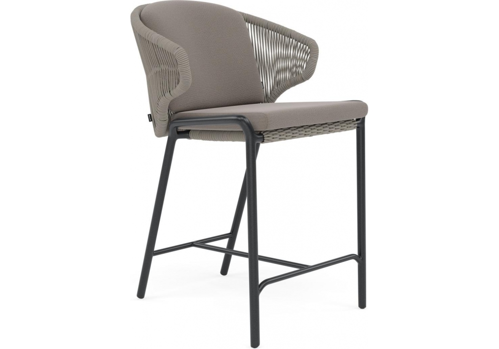 Radius designed by Stephane De Winter for Manutti is a bar stool made with stainless steel structure and woven rope. Upholstery of the cushions in fabric. Available in different finishes and sizes.
