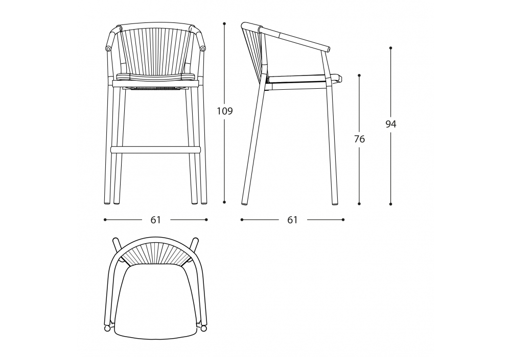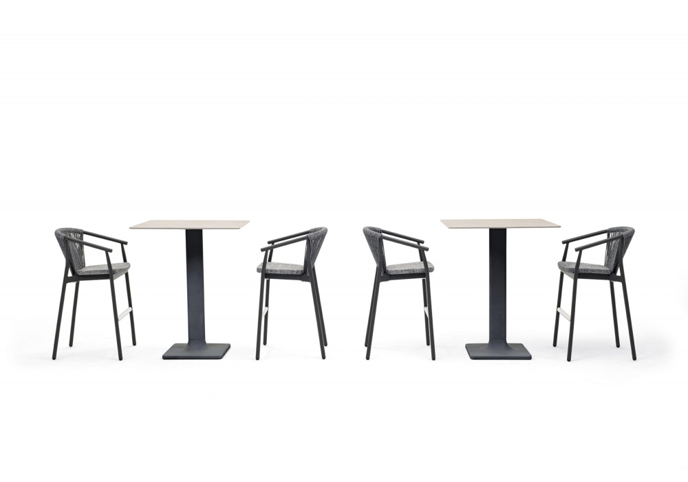 Smart designed by R&D for Varaschin is a stool with powder coated aluminum structure, seat in technical fabric, woven backrests in synthetic cord. Available in different finishes.