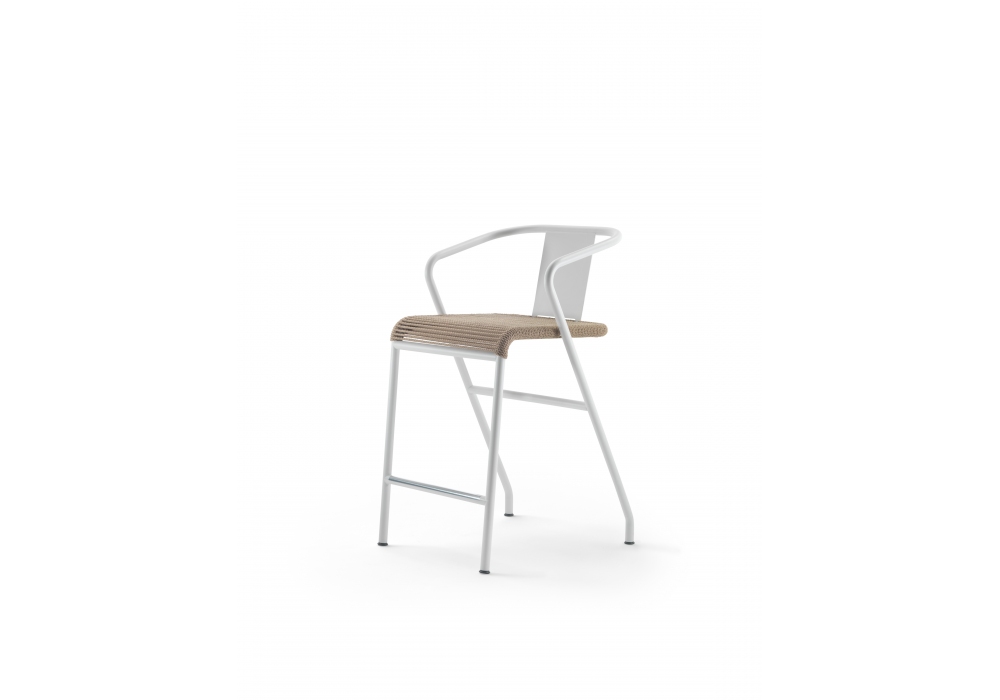 Calipso designed by Antonio Citterio for Flexform is a stool with a stainless steel tubular structure and a rope seat. Available in different finishes.