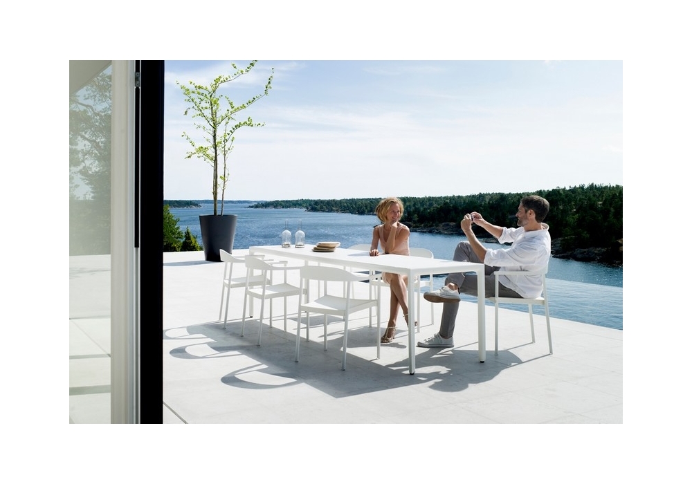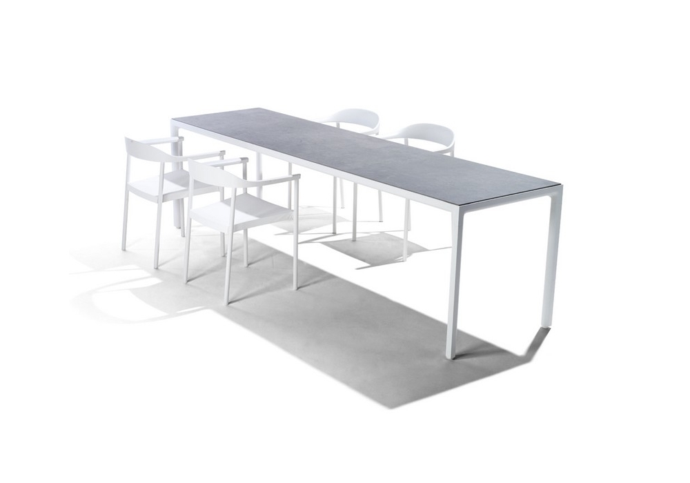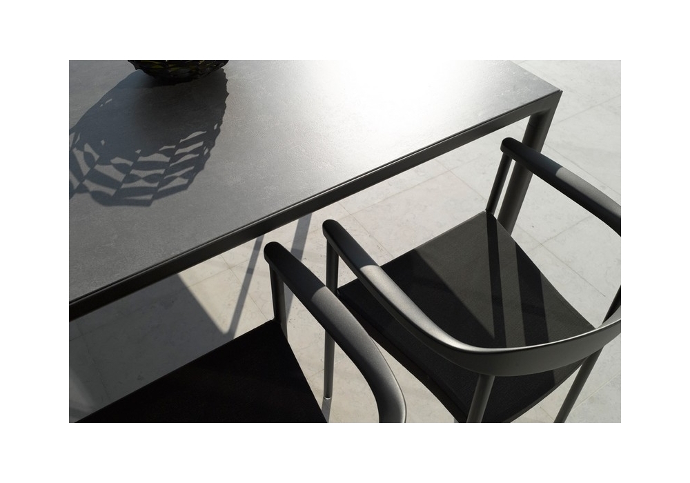 Illum designed by Merckx & Maes for Tribù is a table with aluminum structure and top available in different materials and finishes. The table can be made in various sizes.