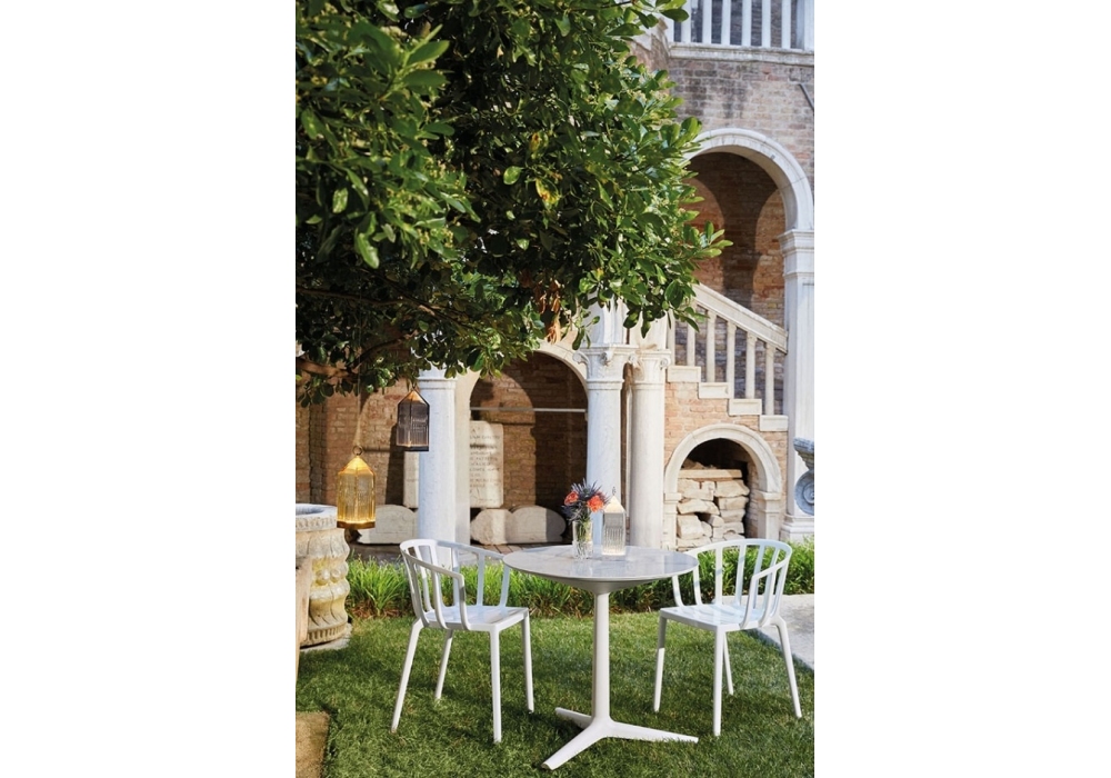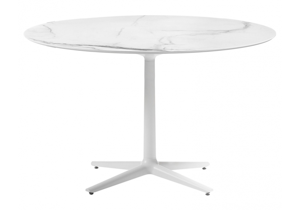 Multiplo designed by Antonio Citterio for Kartell is a table with point star available with round or square top. The base of the Multiplo has a structure in molded thermoplastic material while the top in stoneware with a marble or mass-colored or glass finish. Available in different finishes and dimensions.