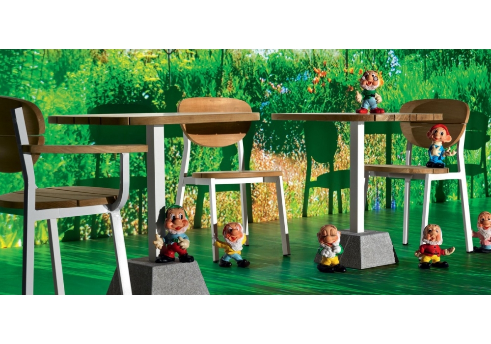 InOut 137 designed by Paola Navone for Gervasoni is a table with base in flamed Piasentina stone and central column in embossed painted aluminium. Slatted top in natural teak, marble or Lecce Stone stoneware.