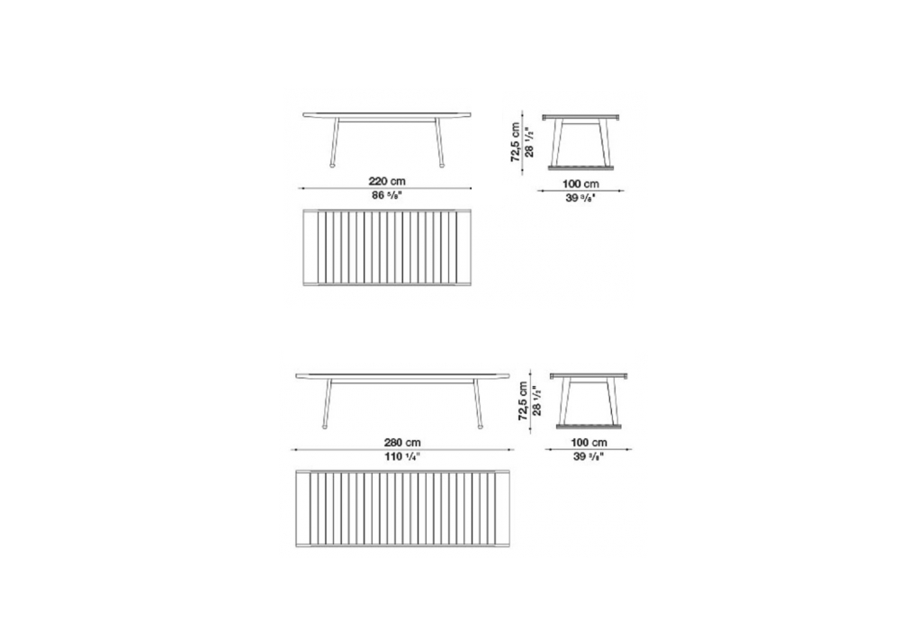 | Dimensions | 220 x 100 x H 72.5 cm; 280 x 100 x H 72.5 cm. |