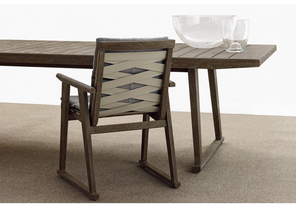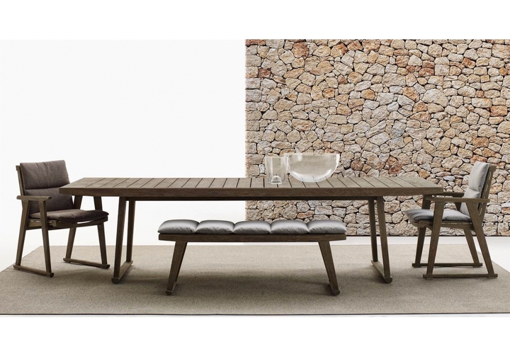 Gio designed by Antonio Citterio for B&B Italia Outdoor is a table with structure and top in teak in antique grey finish. Available in two dimensions.