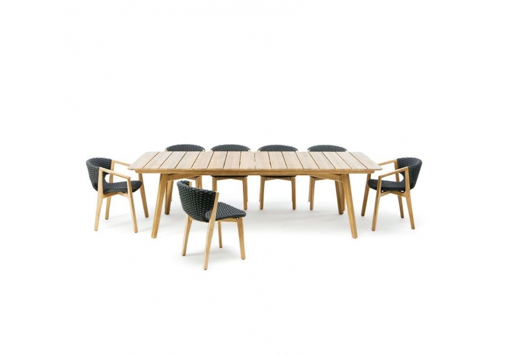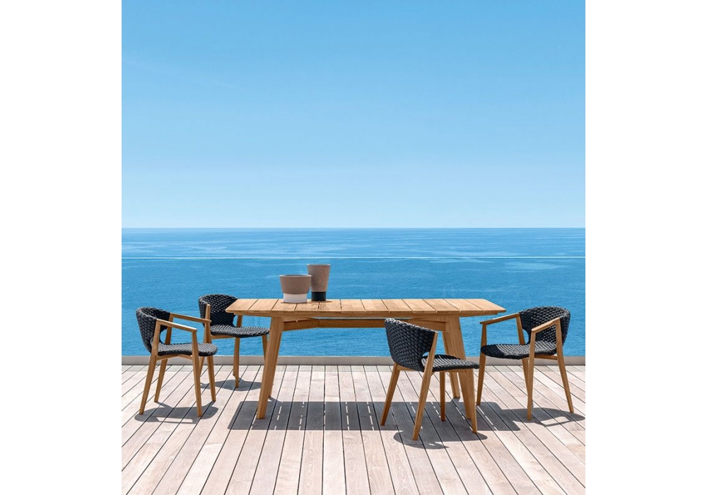 Knit designed by Patrick Norguet for Ethimo is an outdoor table with teak wood structure in different finishes. Available in different models and sizes.