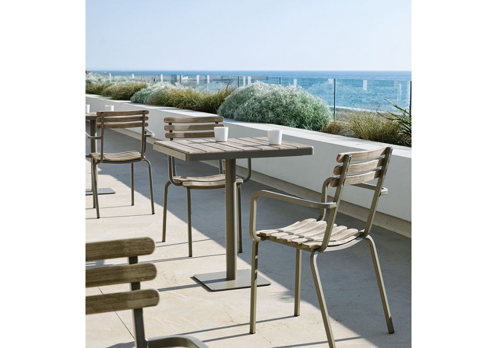 Laren designed by Ethimo is an outdoor high table with metal and teak structure in different finishes. Available in different sizes.