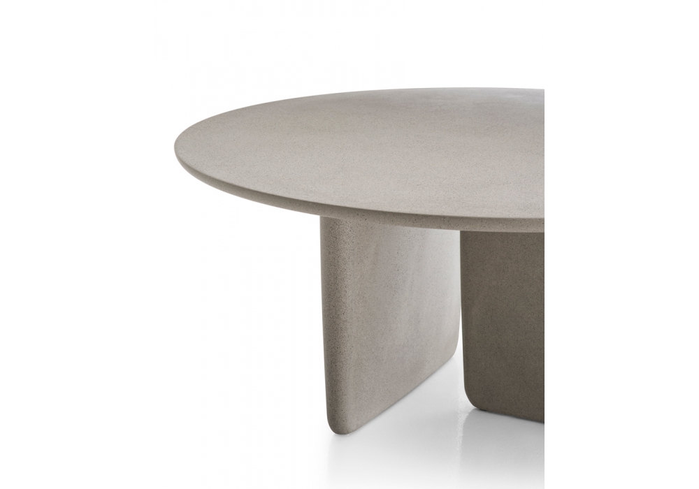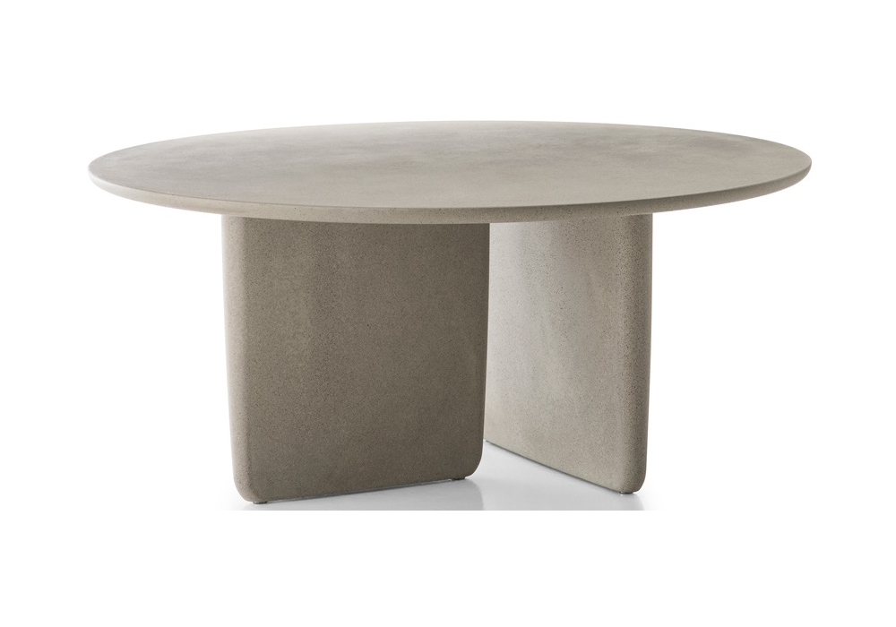Tobi-Ishi designed by Edward Barber & Jay Osgerby for B&B Italia Outdoor is a table made of concrete (Ulttra High Performance Concrete), galvanized sheet metal attachment plate and stainless steel feet with plastic tips.