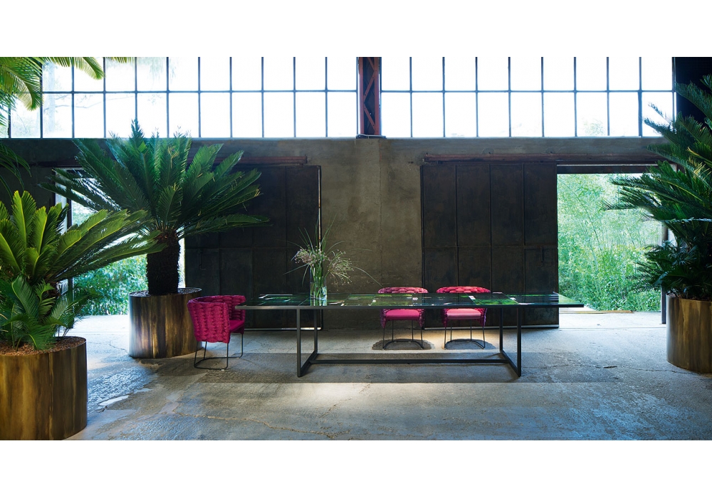 Sciara designed by Marella Ferrera for Paola Lenti is a table with structure in matt lava gray painted AISI 304 stainless steel. The top is in lava with glass decoration, whole or composed of elements. The decoration of the top is handmade and makes every single piece unique. Sciara is available in two sizes and with different top colors.