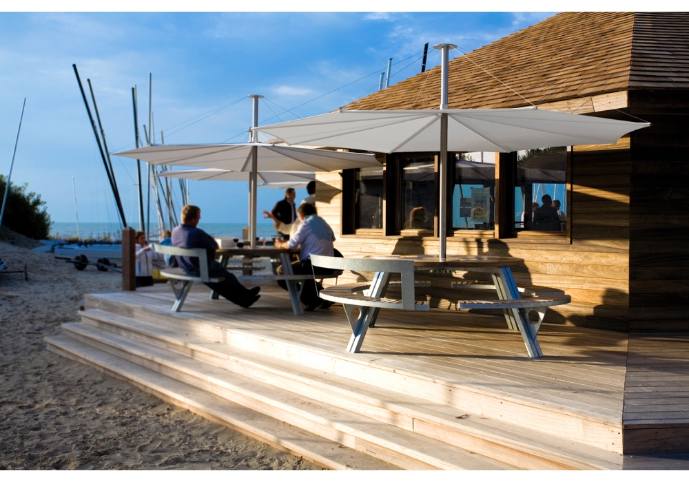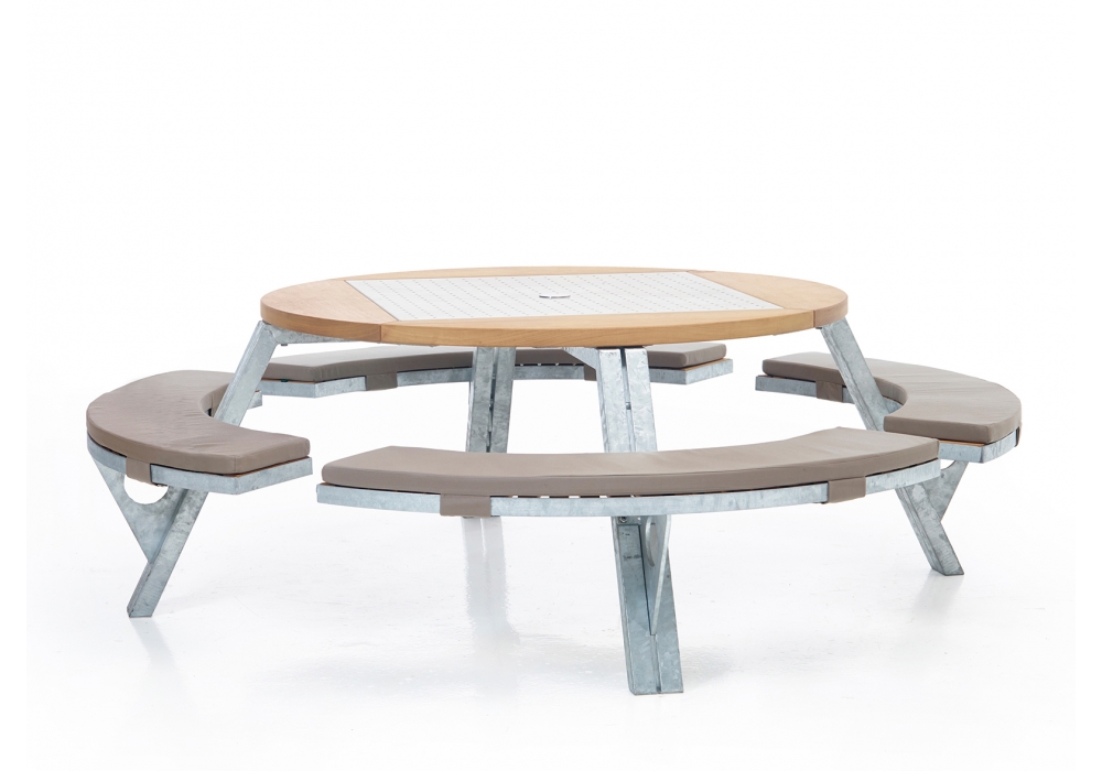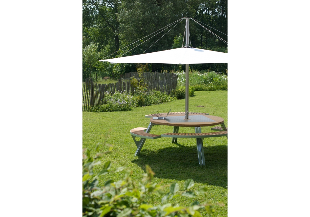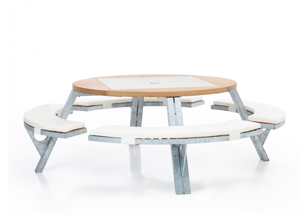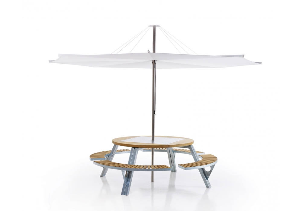 Gargantua designed by Dirk Wynants for Extremis is a table with galvanised steel structure and iroko wood top. The Gargantua table offers superior functionality thanks to its adjustable benches that can be changed in height depending on social or family circumstances.