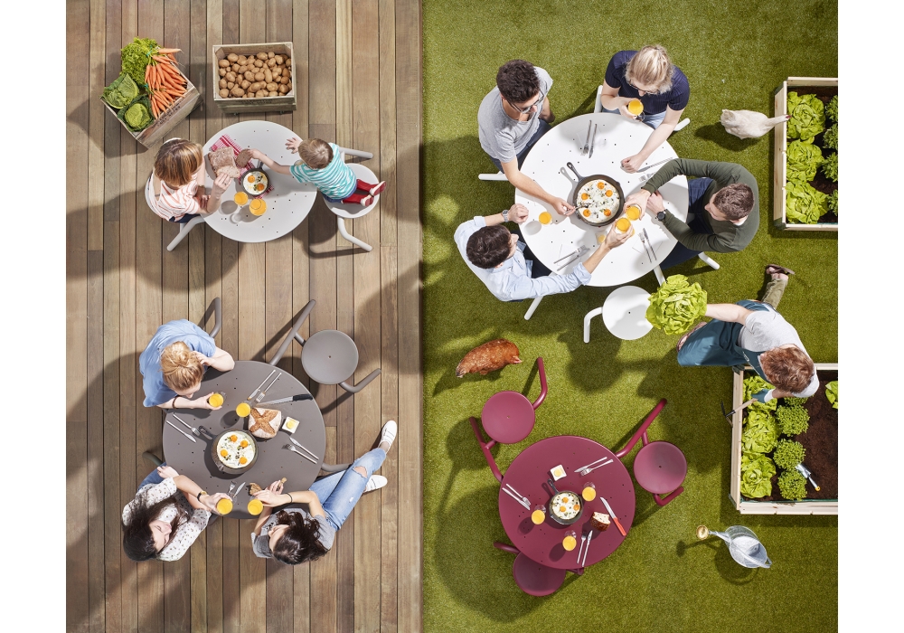 Virus designed by Dirk Wynants for Extremis is an an outdoor table realized with galvanized and powder coated steel. Its compact design responds to the trend for smaller living spaces, offering a solution that enables you to use our tools on balconies and in urban gardens. Available in different finishes.