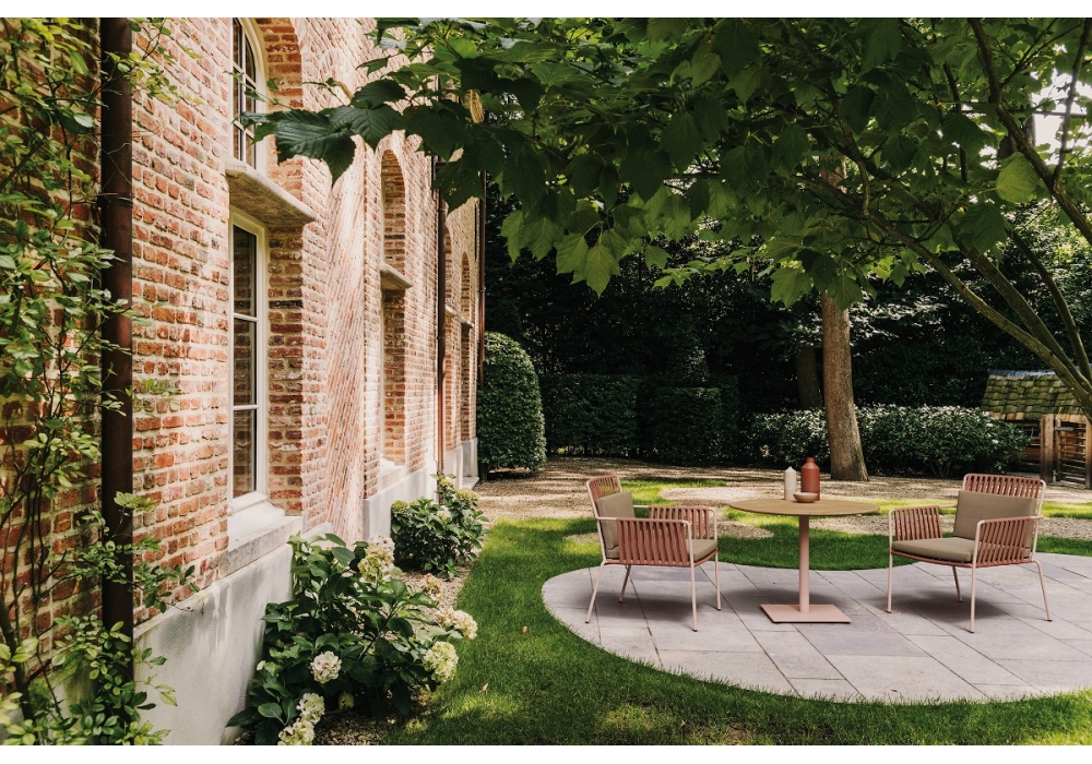 Net designed and produced by Kettal Studio is a circular dining table with a painted aluminum frame and base. The top is circular in teak wood, aluminum or marble. Net is available in different finishes.