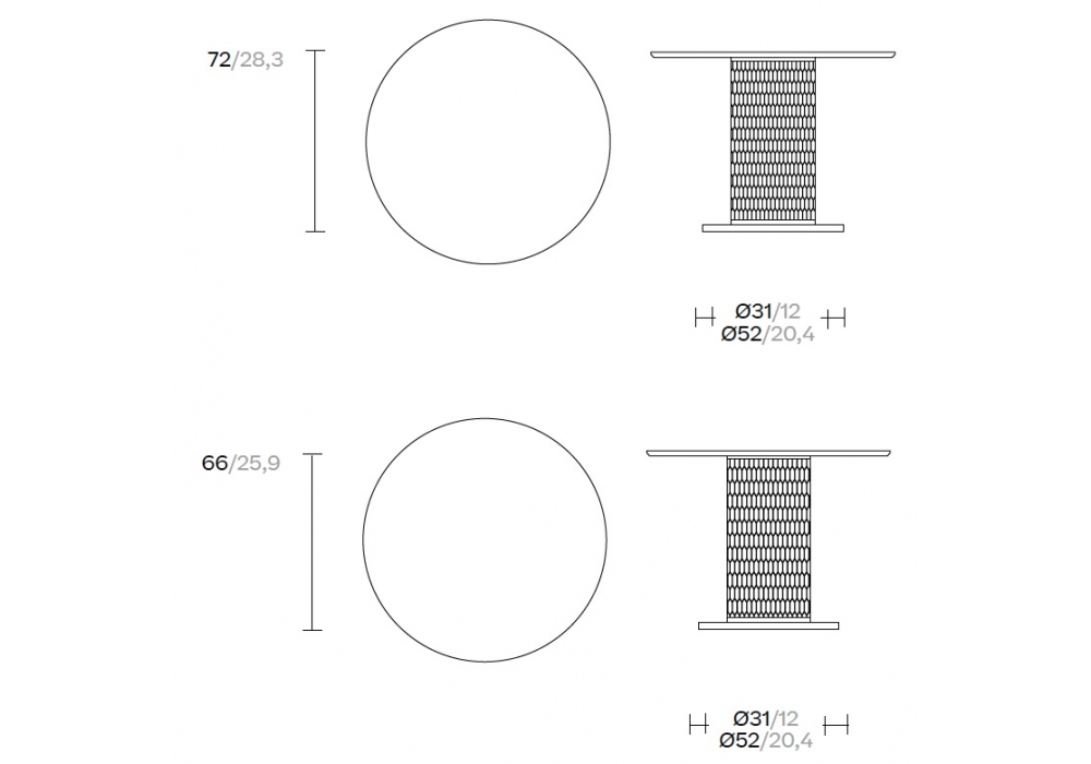 | Dimensions | Ø 90 x H 72 cm; Ø 90 x H 66 cm. |