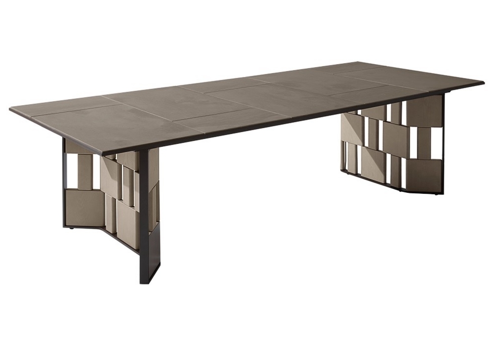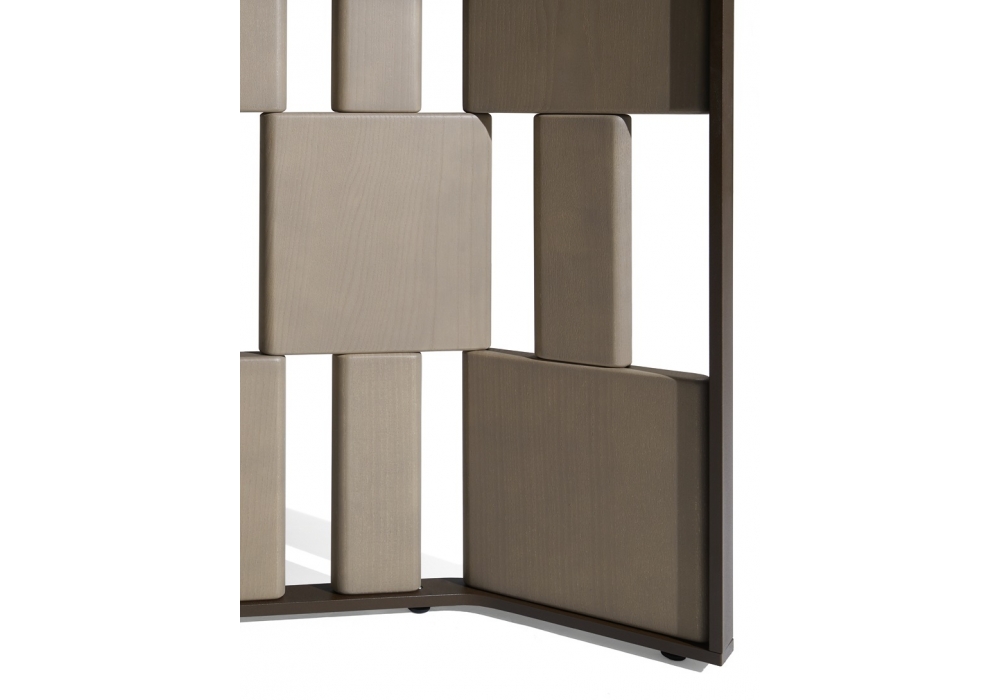 Break designed by Ludovica & Roberto Palomba for Giorgetti is a table with frame in aluminum and protected stainless steel, powder lacquered in carob colour. The leg inserts are in ash wood available in sand finish (fin.3F) and the top is made up of inserts in brushed grigio oriente marble. Available in 2 sizes.
