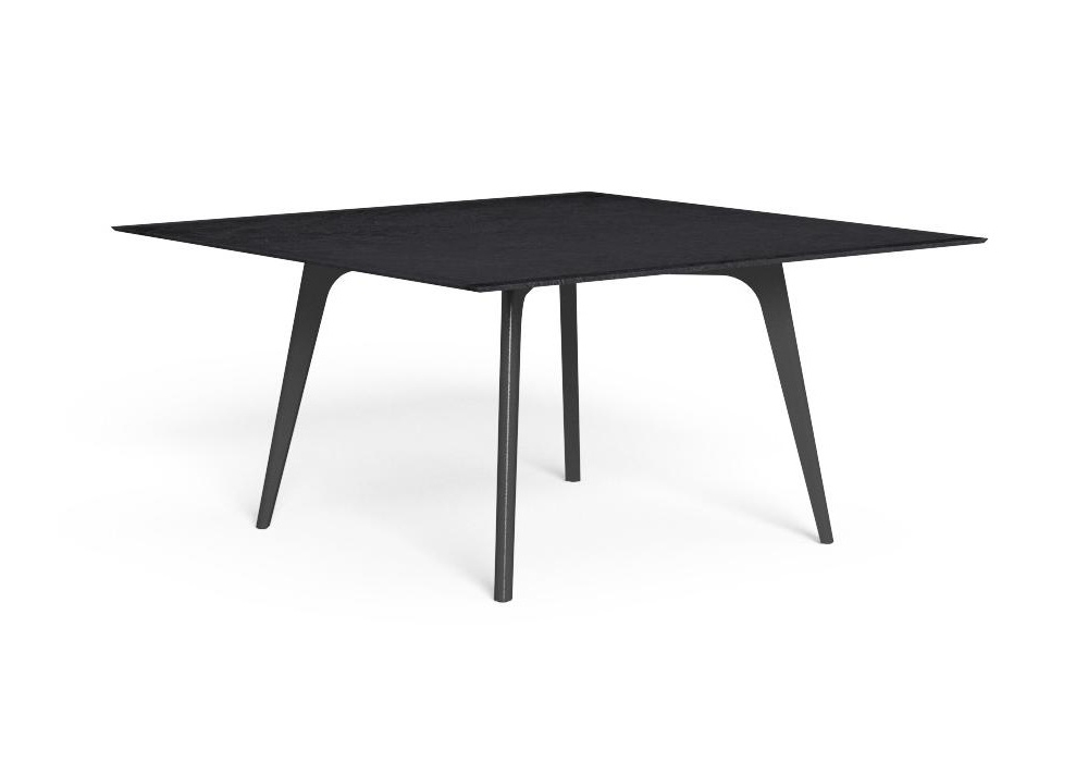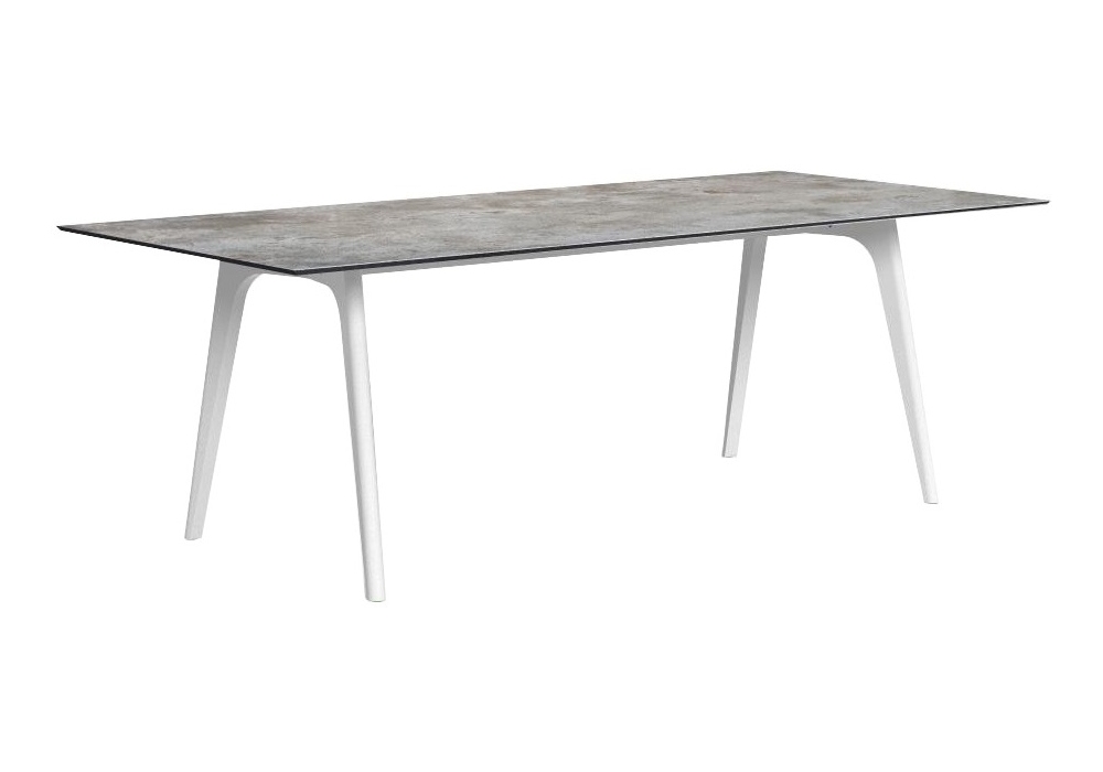 Cleo Soft Alu designed by Marco Acerbis for Talenti is a table with structure in white or graphite aluminum and top in light or dark gray fiber cement.