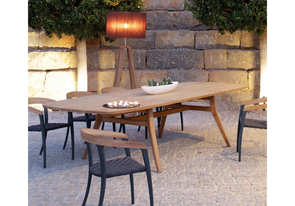 Zidiz designed by Kris Van Puyvelde for Royal Botania is an extendable table with aluminum and teak structure available in different finishes. Top made of Teak.