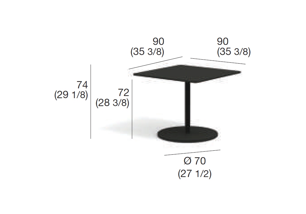 | Dimensions | • 80 x 80 x H 74 cm; • Ø 80 x H 74 cm; • 90 x 90 x H 74 cm; • Ø 90 x H 74 cm |